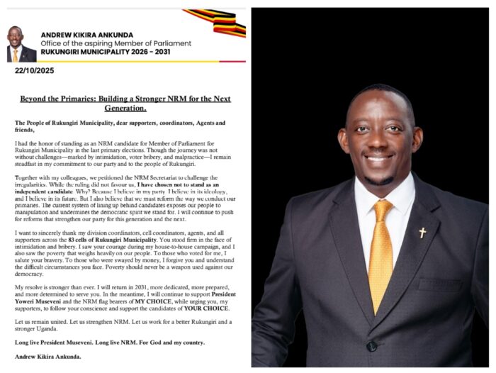 Rukungiri: Aspiring Member of Parliament for Rukungiri Municipality, Andrew Kikira Ankunda, has withdrawn from the…