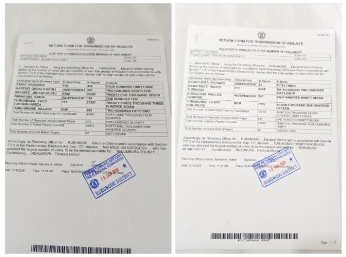 In Rukungiri Municipality, General Henry Kakurugu Tumukunde of NRM was declared the elected Member of Parliament after polling 7,115 votes. He defeated Ingrid Kamateneti Turinawe of PFF, who garnered 6,268 votes.